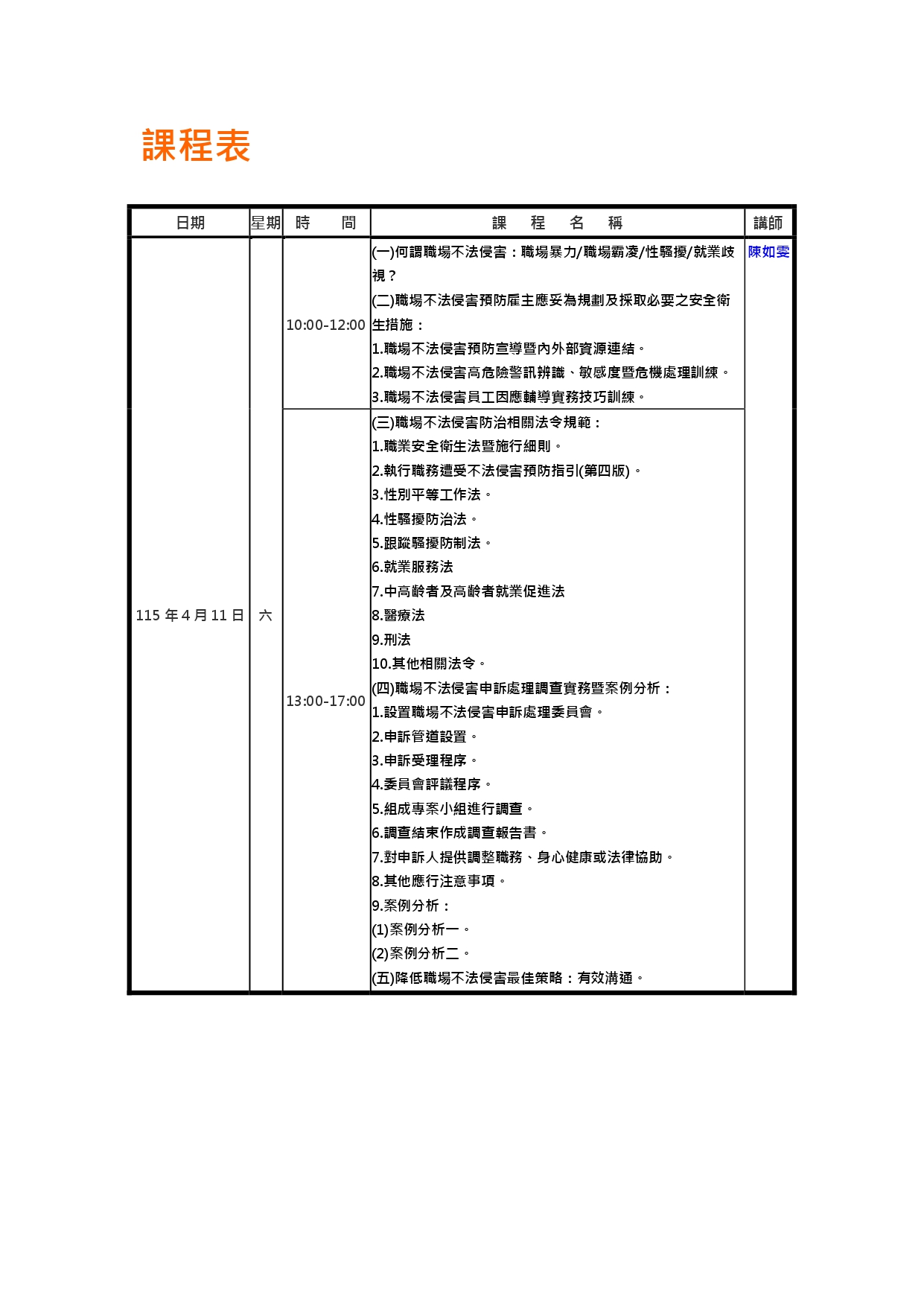 115年4月全國線上場職場不法侵害防治實務技巧訓練暨案例分析進階班課程